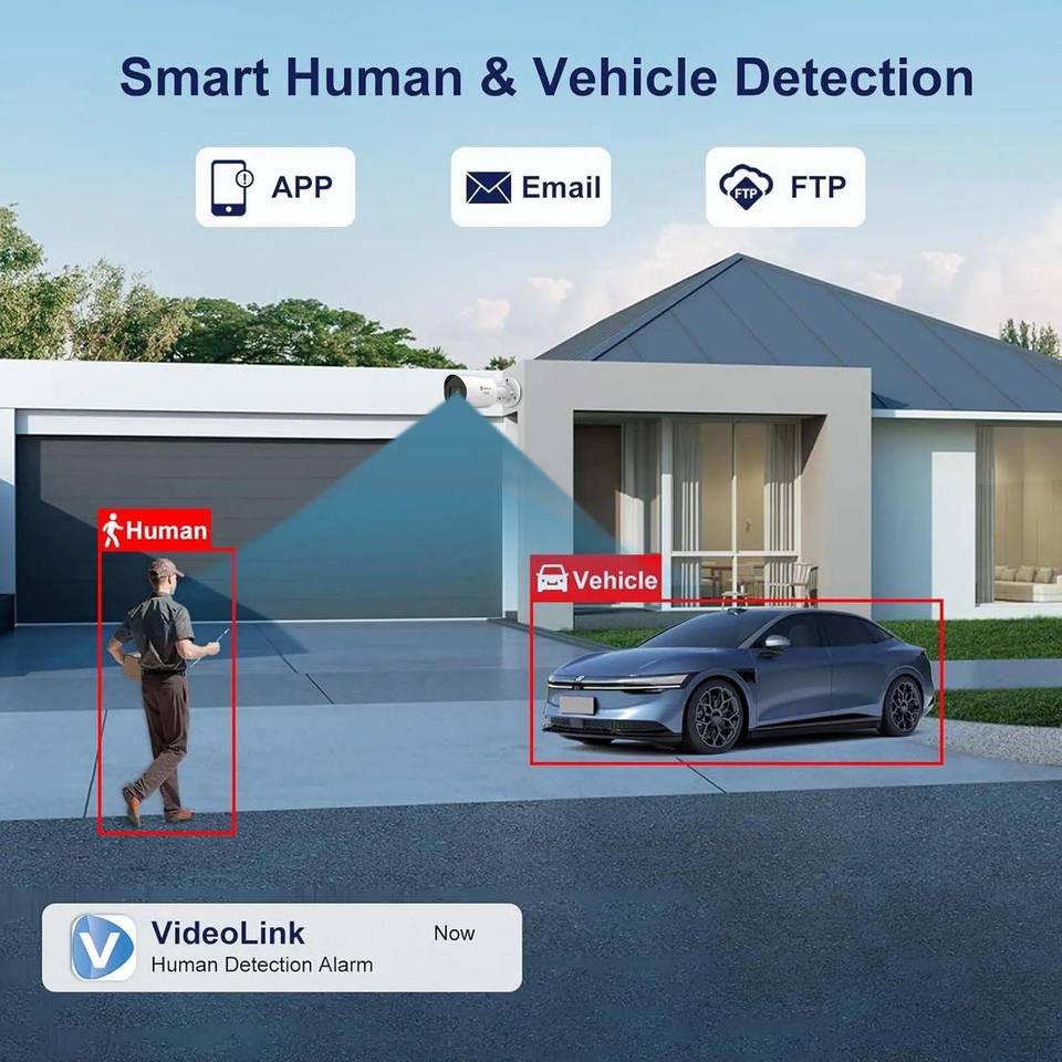 Visión nocturna, Detección de movimiento, Impermeable / a prueba de mal tiempo, Construido-En sirena, De Audio de dos vías, Reconocimiento facial, Humanos de seguimiento de movimiento, Luz dual