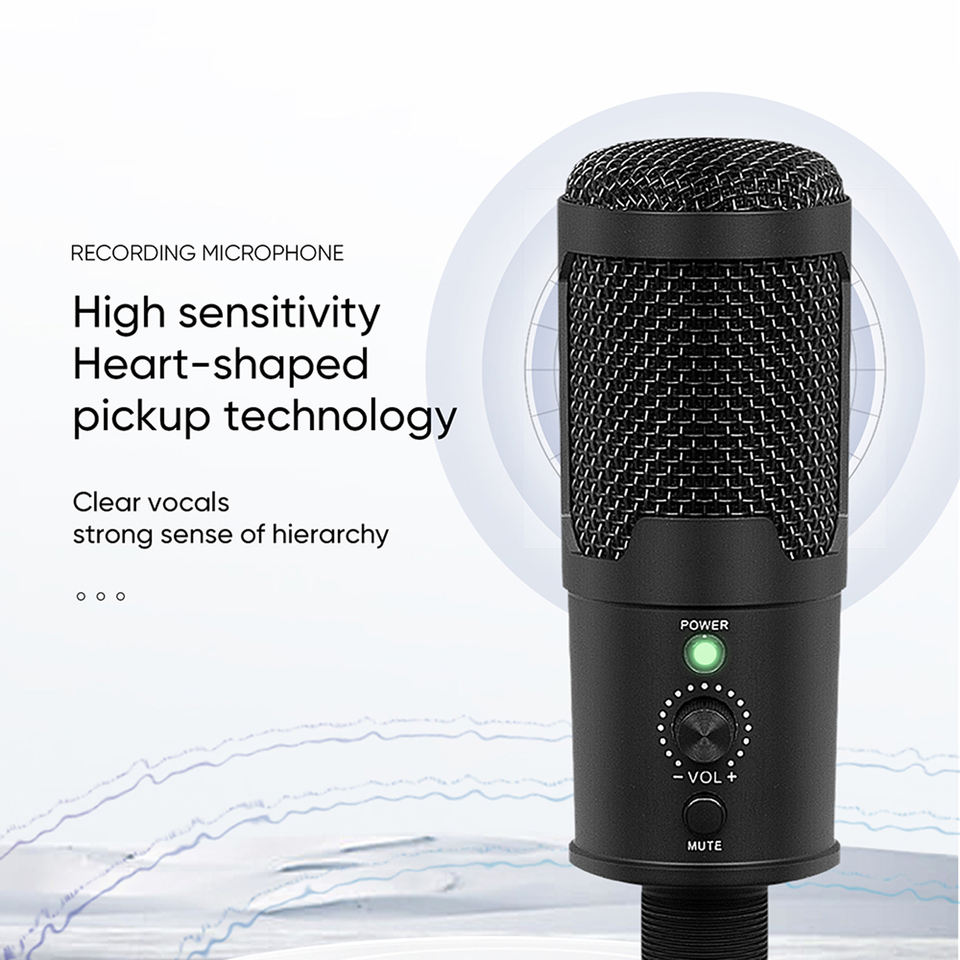 Micrófono de Condensador USB OEM A12 de Alta Sensibilidad con Construcción Metálica para Conferencias de Escritorio y Grabación de Transmisiones en Vivo
