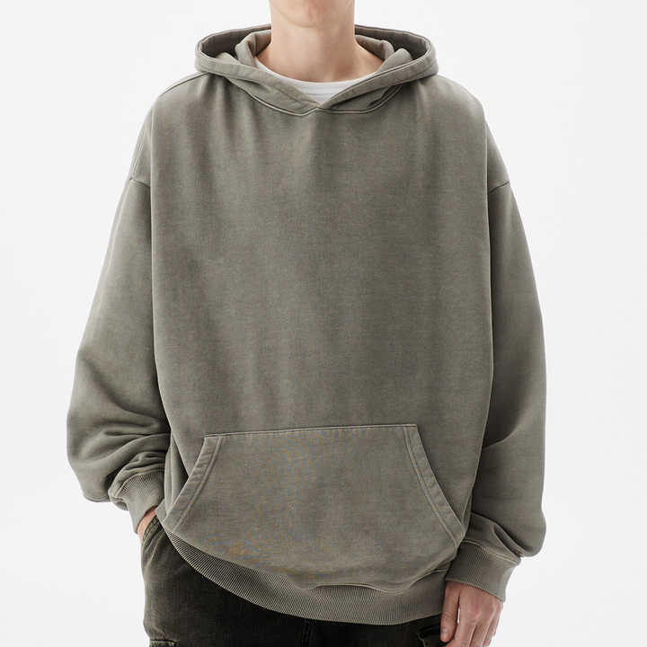OEM Acid Wash Hombres Sudadera con capucha Conjunto 100 Algodón Manga larga Impreso Oversize Pullover Hoodies Venta al por mayor Negro