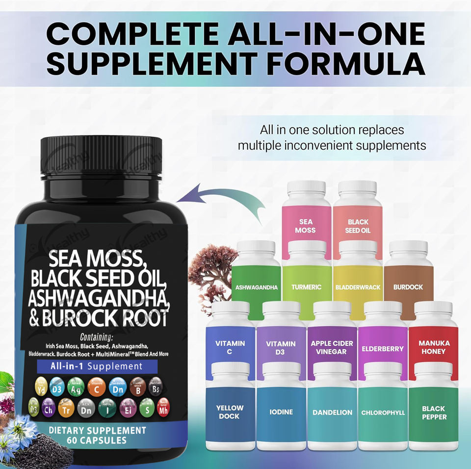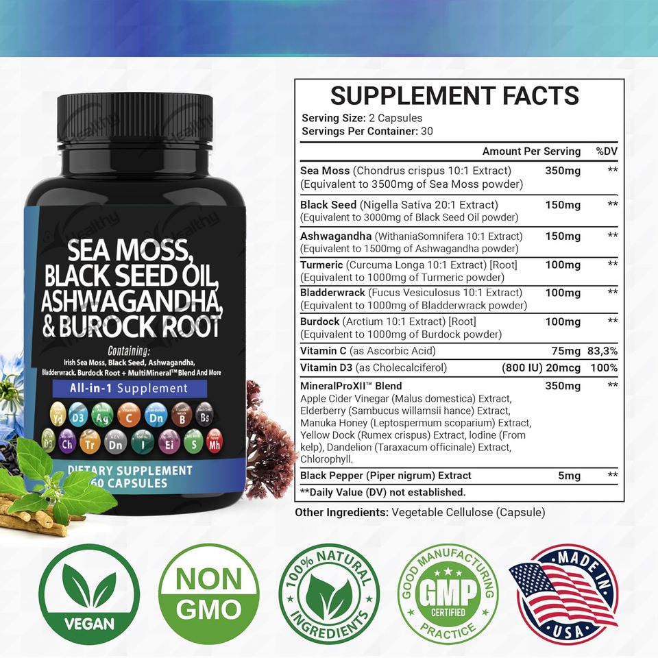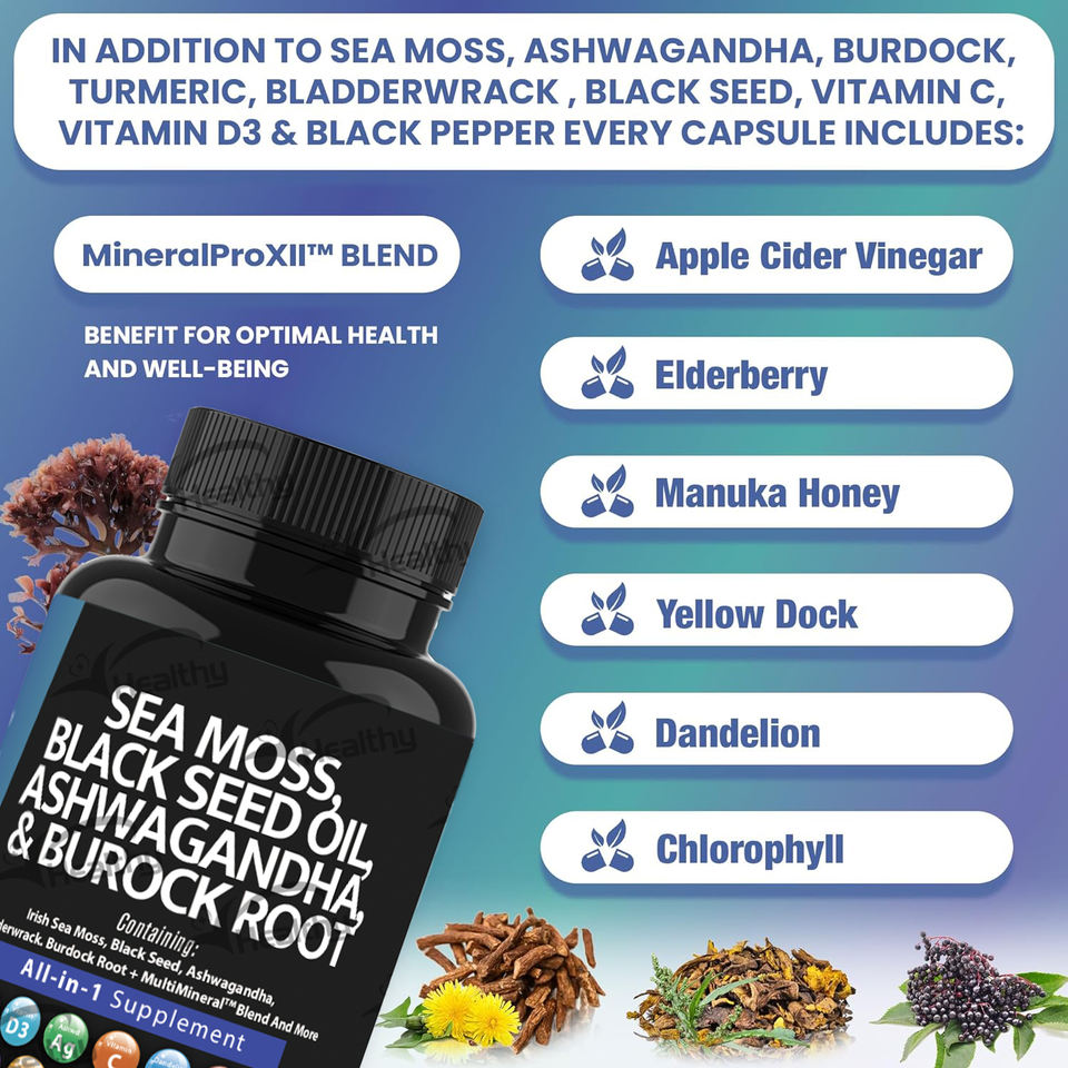 Cápsulas de Extracto de Cúrcuma Avanzado Plus OEM 95%, Complejo de Musgo Marino Irlandés con Alga Marina y Raíz de Bardana para Adultos