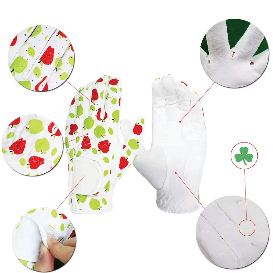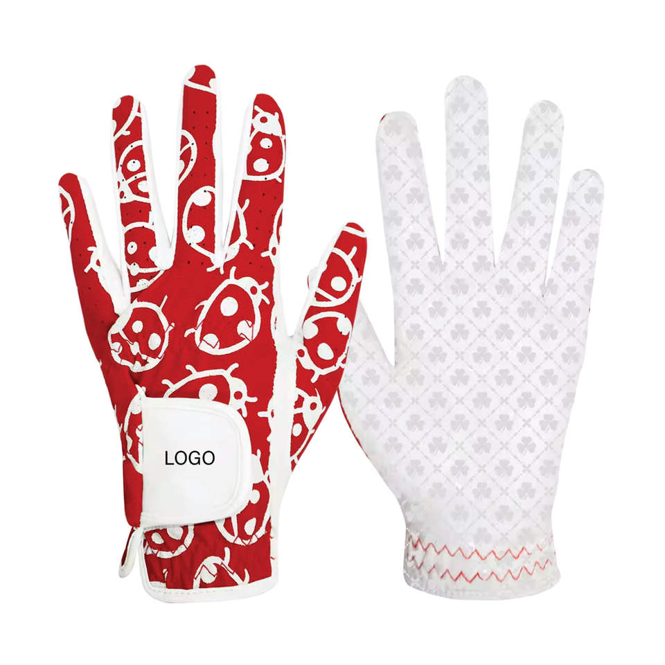Guantes de golf para mujer para todo tipo de clima OEM con material de cuero transpirable Diseño de sublimación personalizado y guantes deportivos de agarre para uñas