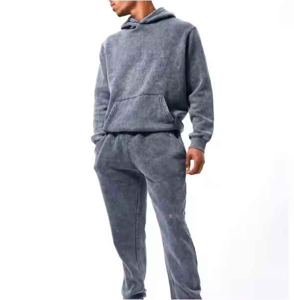Chándal OEM Athletic Fit con lavado ácido para hombre, ropa de calle urbana, Sudadera con capucha y bolsillo de canguro, chándal para hombre con lavado ácido, diseño OEM