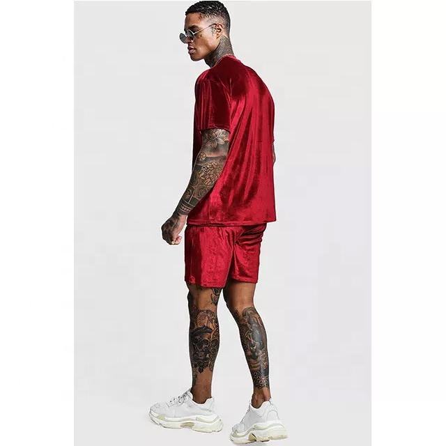 Conjuntos de Dos Piezas para Hombre, Color Personalizado de Otoño, Camiseta de Manga Corta y Pantalones Cortos de Terciopelo de Poliéster/Algodón