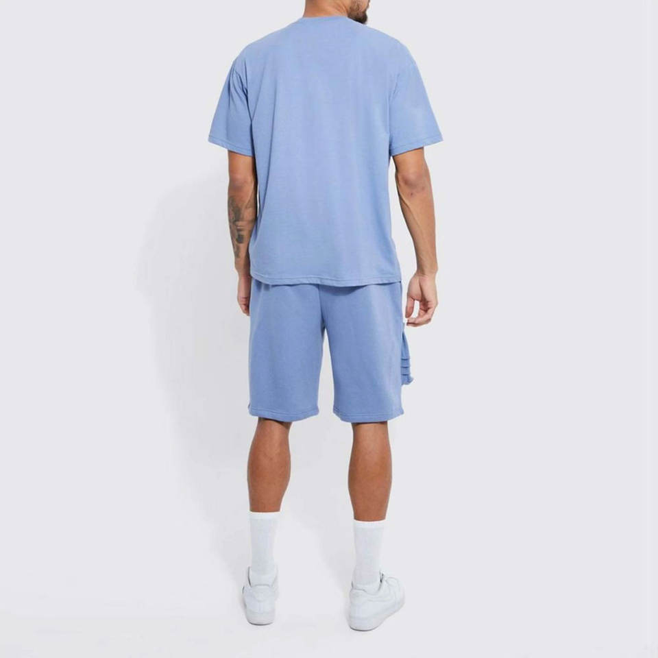 Conjunto de 2 piezas de algodón de color sólido más vendido por OEM para hombre, conjunto de pantalones cortos y camiseta con colores y tallas de impresión personalizados