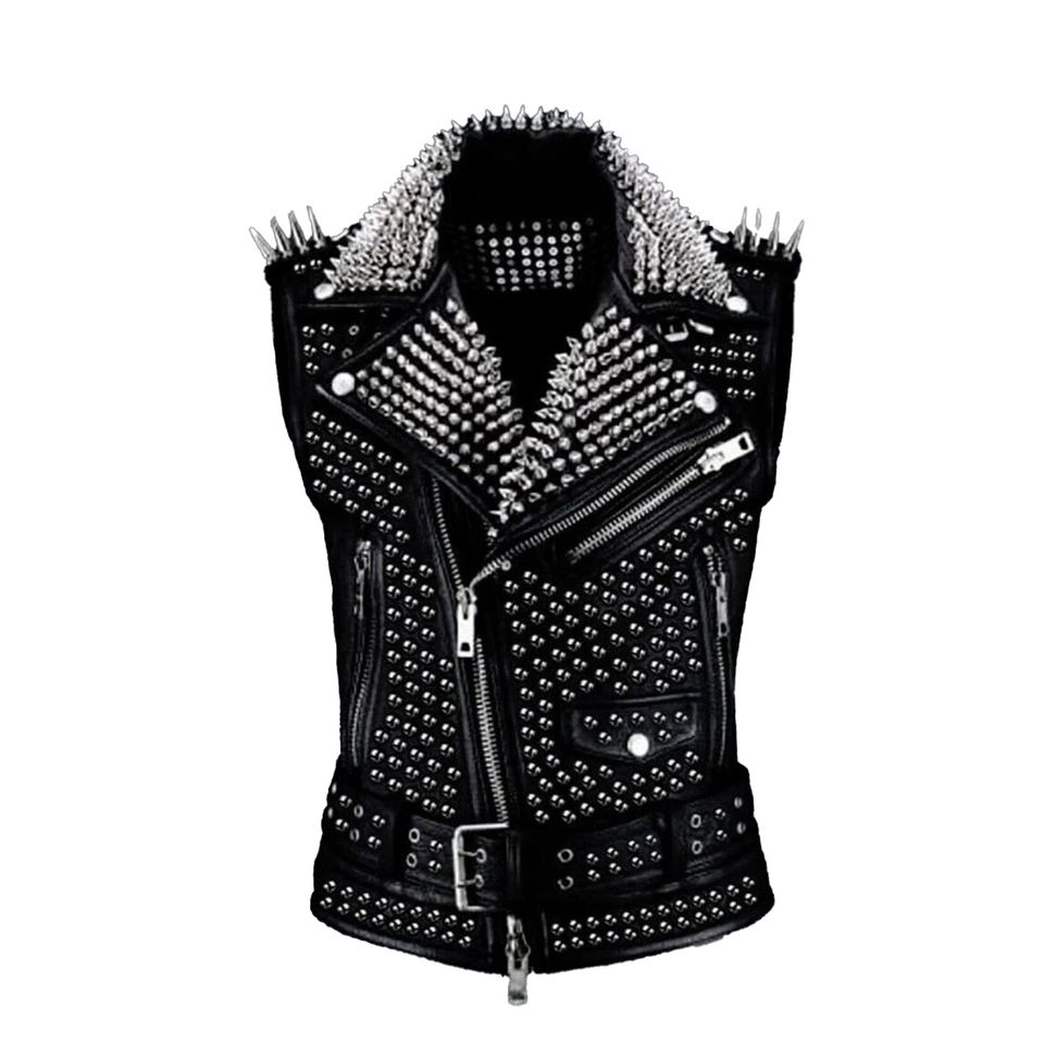 OEM mejor estilo profesional personalizado logotipo Chaleco de cuero cálido motorista cuero Steampunk plata tachonado hombres chalecos y chalecos