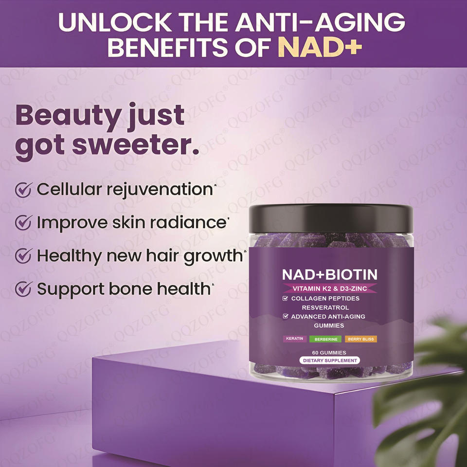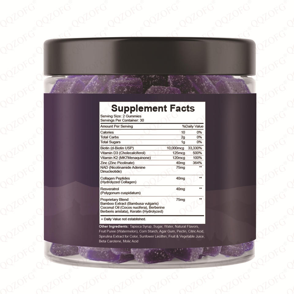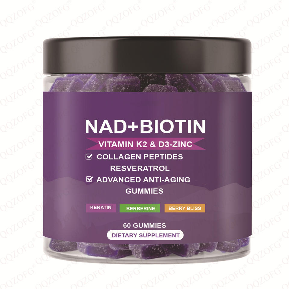 Ingrediente principal:NAD+Biotin Vitamin K2& D3-Zinc Collagen Peptides Resveratrol Gummies