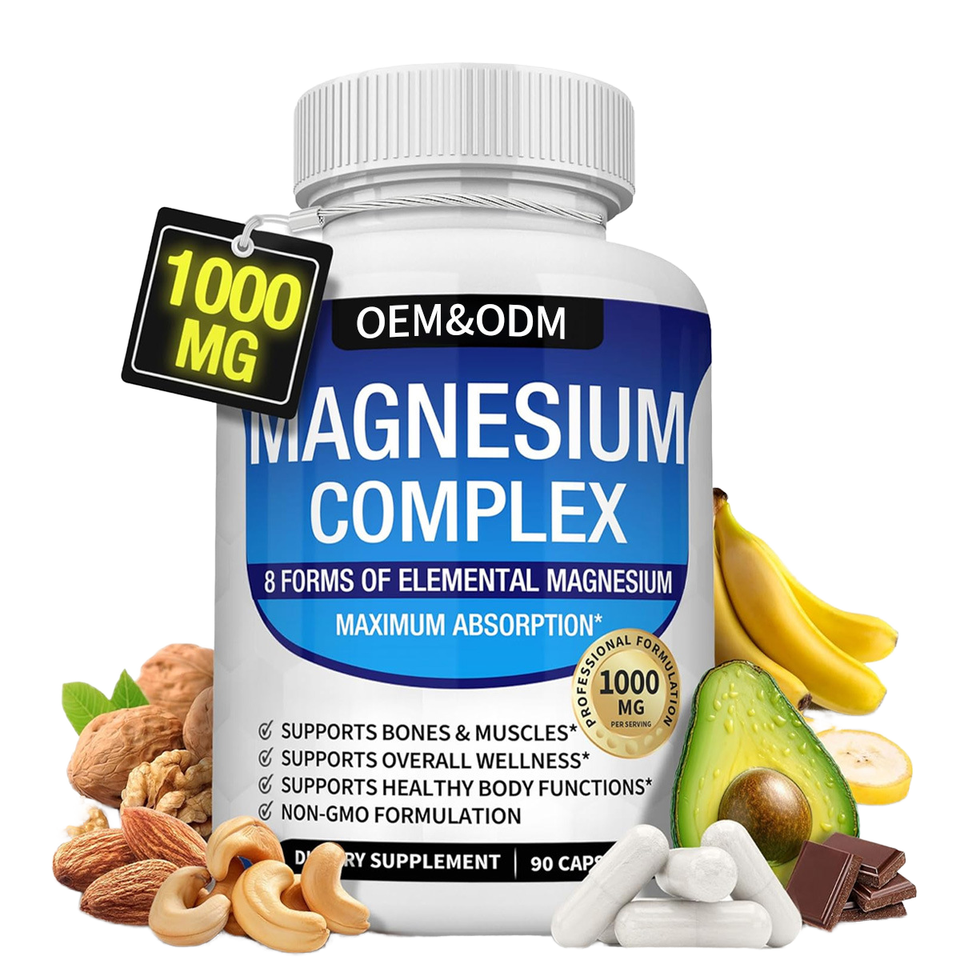 Cápsulas de Magnesio Complejo OEM a Granel, Fórmula 8 en 1 para Apoyo Nutricional Diario