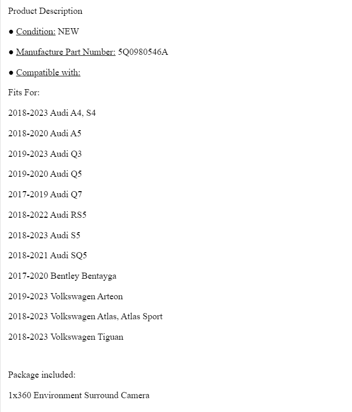 Nombre del producto:Cámara de visión trasera