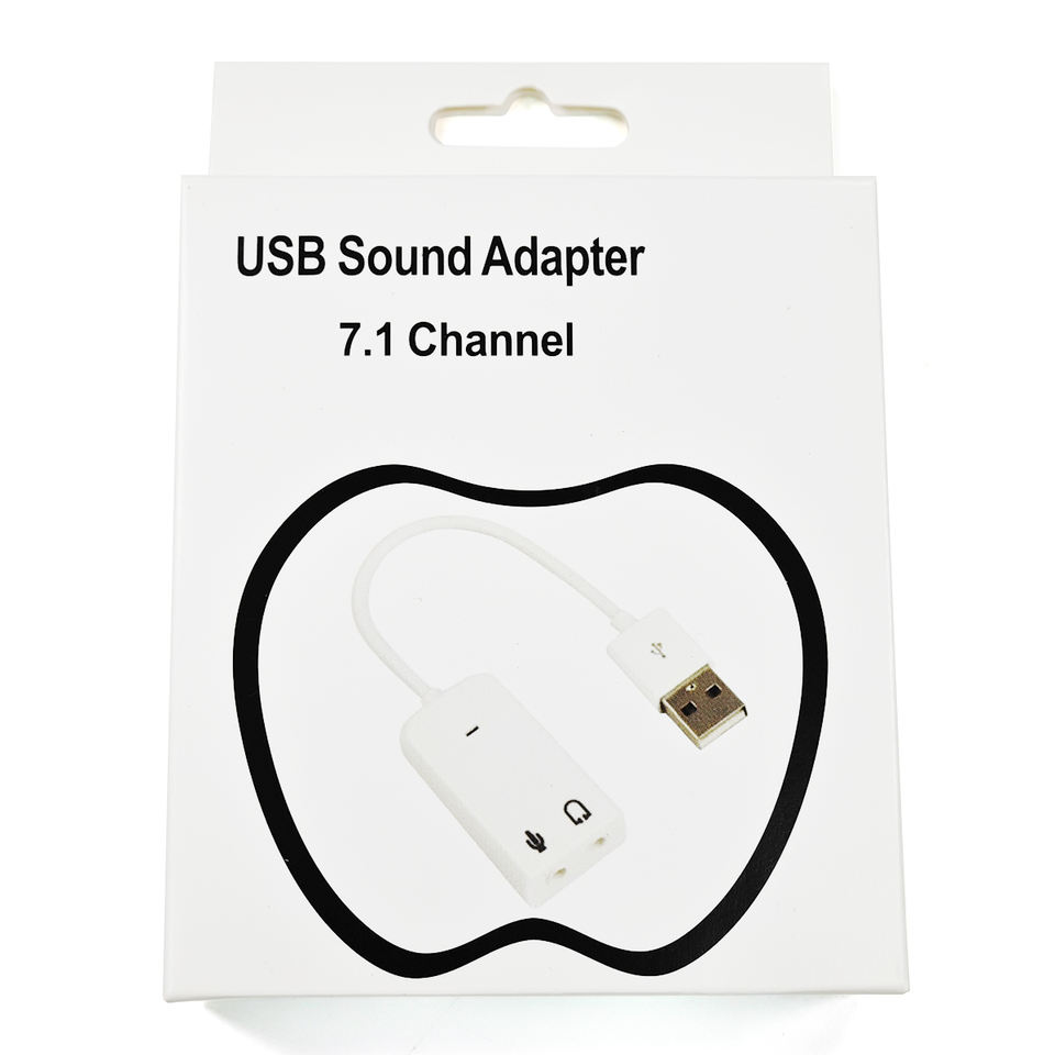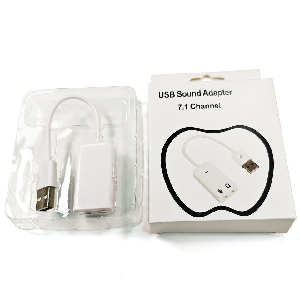 Tarjeta de Sonido USB Económica OEM 2.0 Virtual 7.1 Canales, Blanca, Externa, con Conector de 3.5 mm, USB a Jack