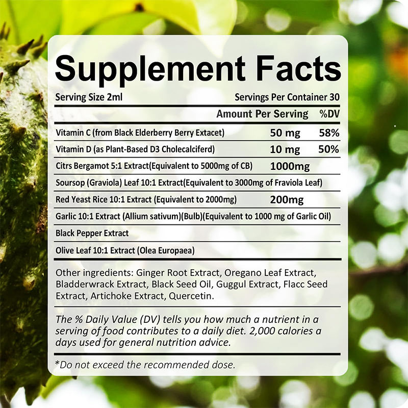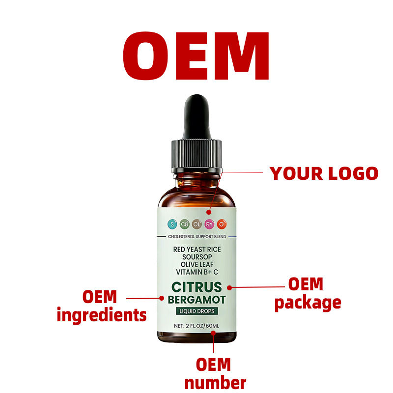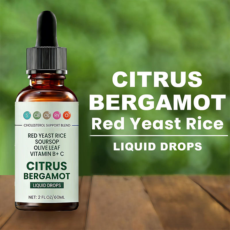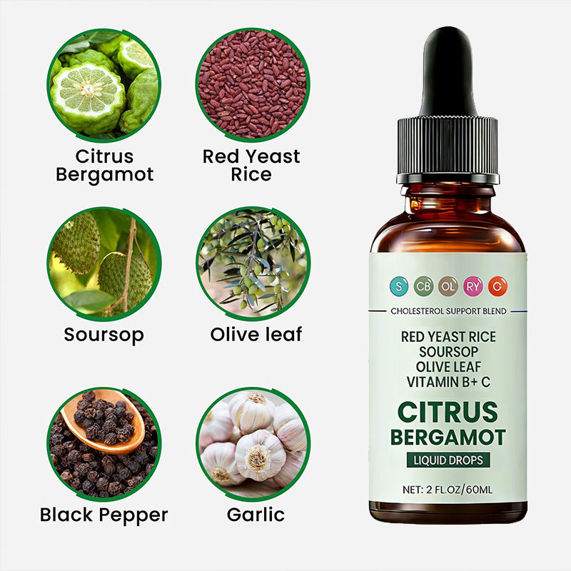 Gotas Líquidas de Apoyo al Colesterol OEM, Complejo de Arroz de Levadura Roja, Alcachofa, Hoja de Olivo, Vitaminas B y C, Esencia de Bergamota Cítrica, Botella de 60 ml