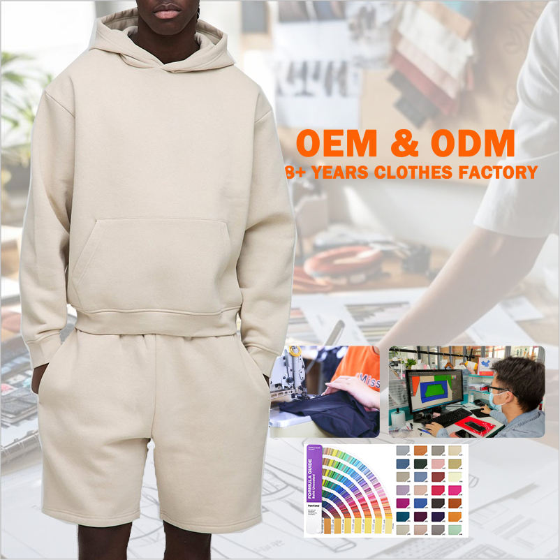 Nombre del producto:OEM Heavy Cotton Hoodie Shorts Sweatsuit Chándal Hombres Ropa Set