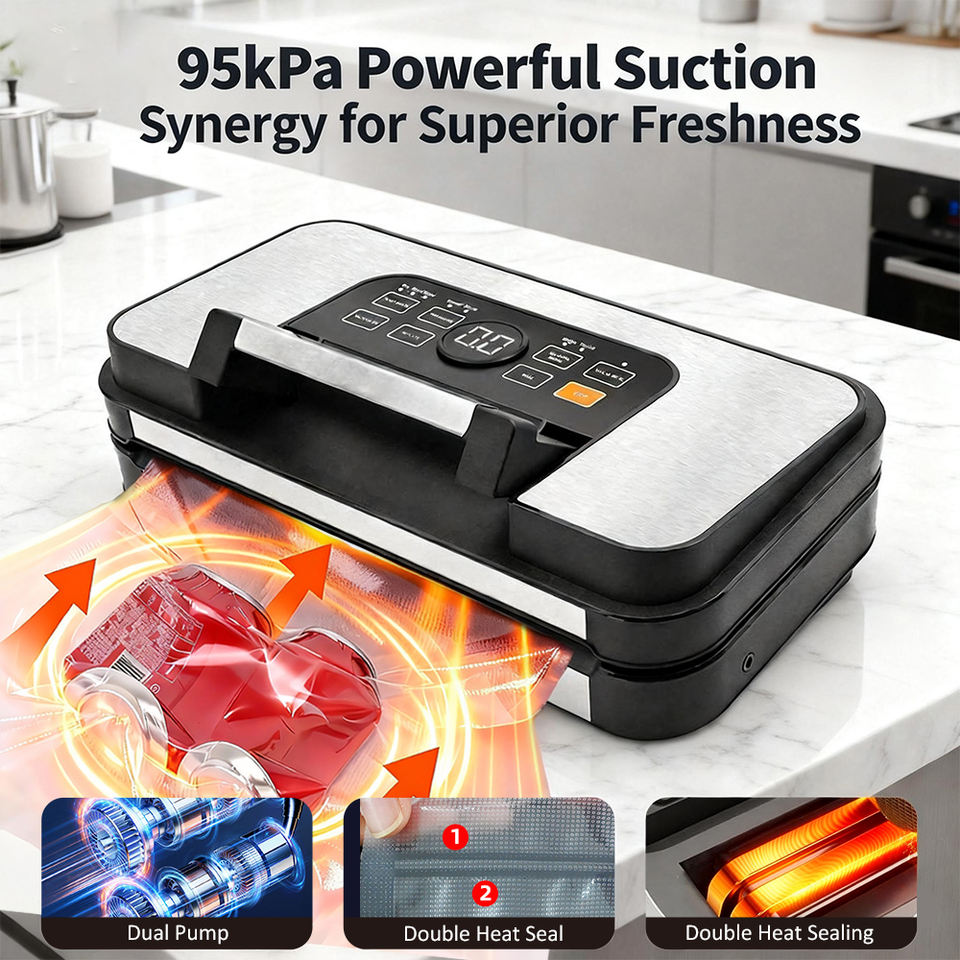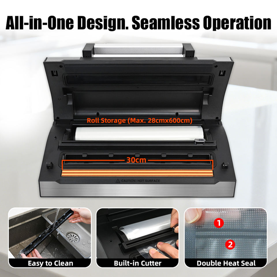 Característica:Cortador incorporado, Diseño compacto, Modos secos y húmedos, Fácil de limpiar, Indicador del LED, Resistencia de largo tiempo, Múltiples modos de sellado, Potente succión, Compatibilidad versátil del bolso