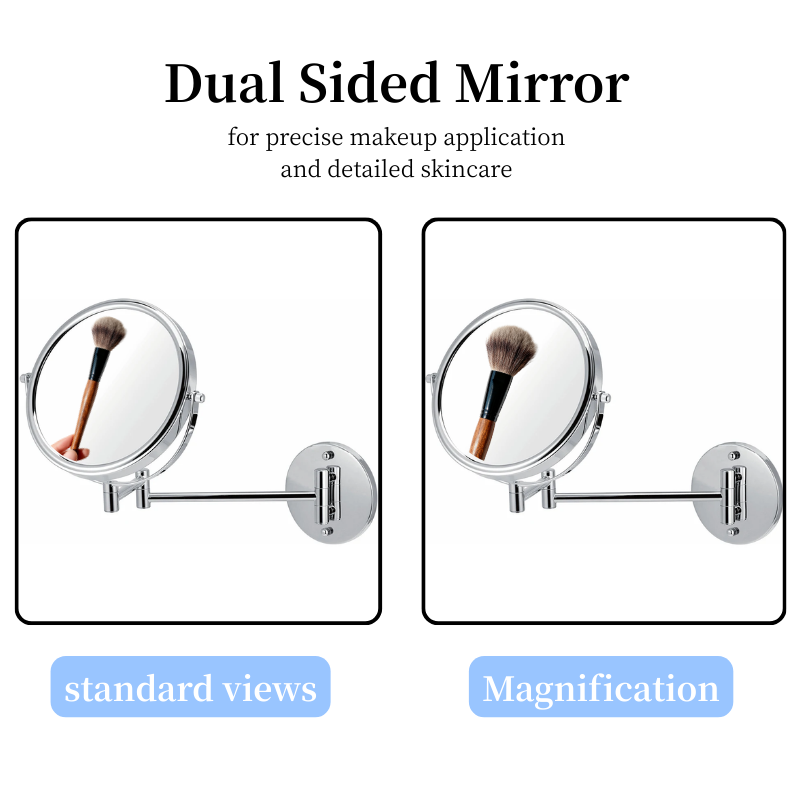 Espejo de Vanidad Plegable Compacto OEM, de Pared, Giratorio 360°, Doble Cara, con Aumento 3x, Ahorra Espacio, para Hotel