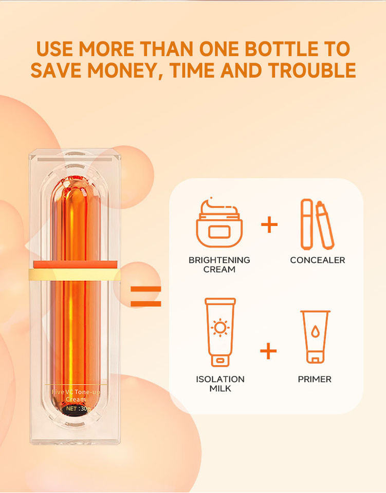 Crema Aclarante y Tonificante con Cinco Vitaminas C, Maquillaje Aislante de Grado OEM, Iluminadora y Nutritiva