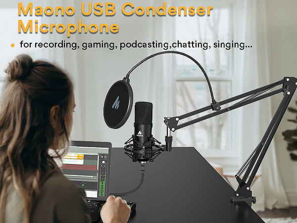 Micrófono de condensador, Micrófono USB, Portátil, Cancelación de ruido