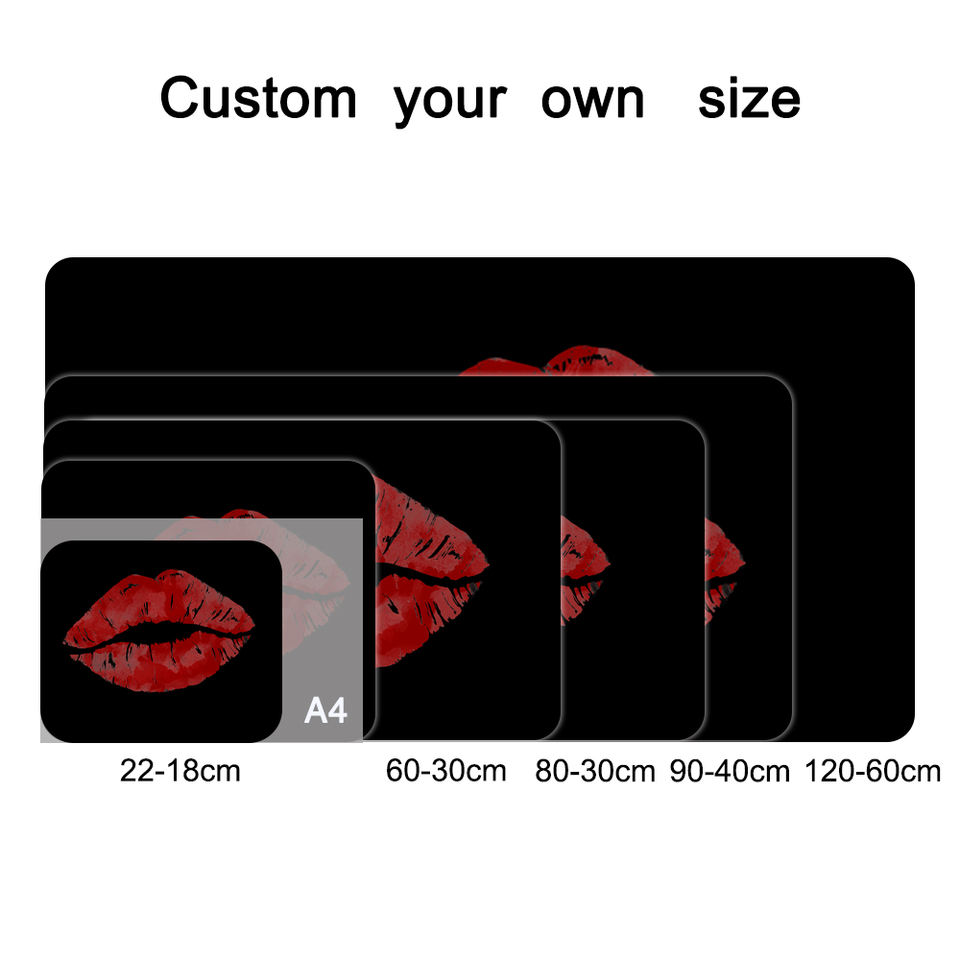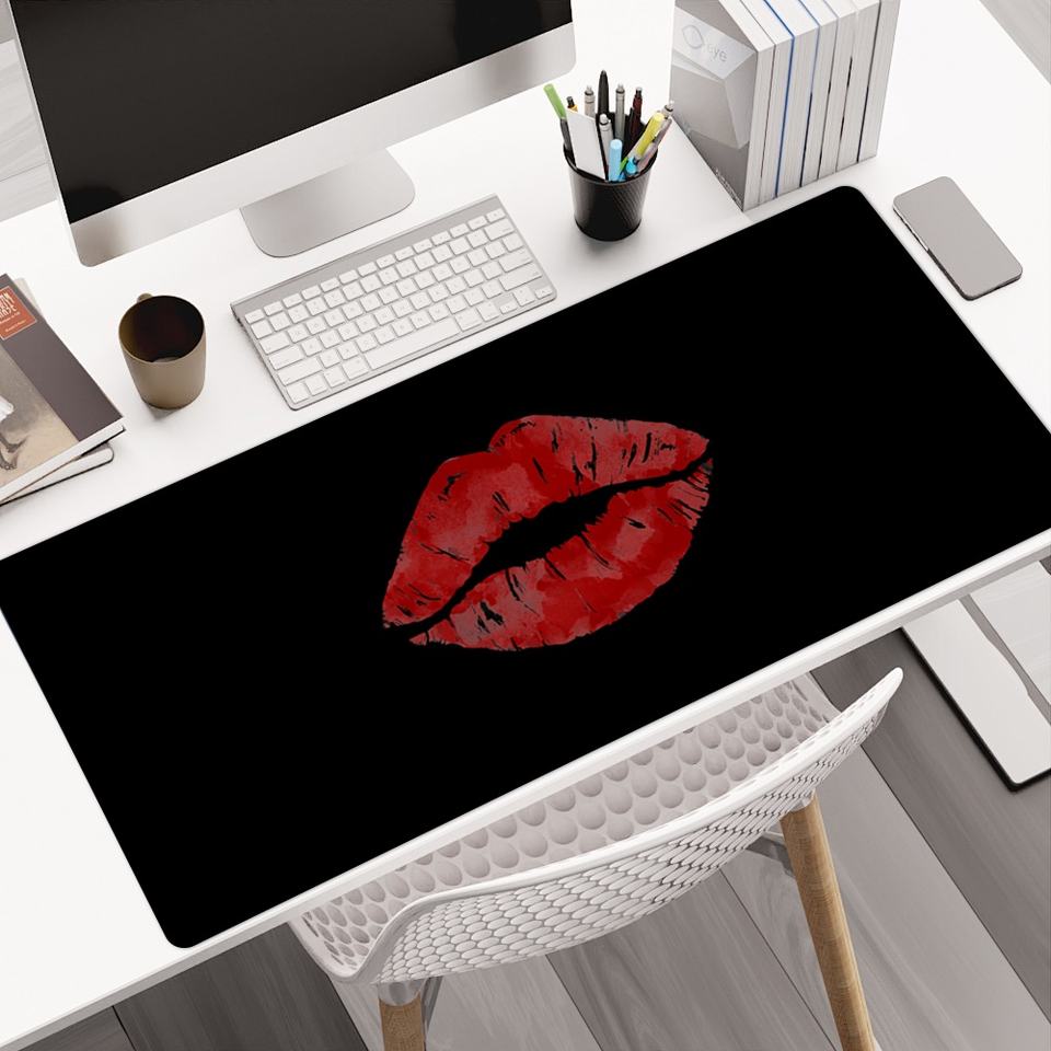 Alfombrilla de Ratón para Juegos con Diseño OEM, Fondo de Labios Rojos, Antideslizante, de Goma, Sublimada, Alfombrilla de Escritorio Grande para Oficina y Hogar