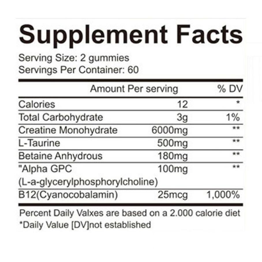 Gomitas de Monohidrato de Creatina OEM 5000mg para Hombres y Mujeres, 120 Unidades Masticables de Monohidrato de Creatina para Apoyo Muscular, Aumento de Energía