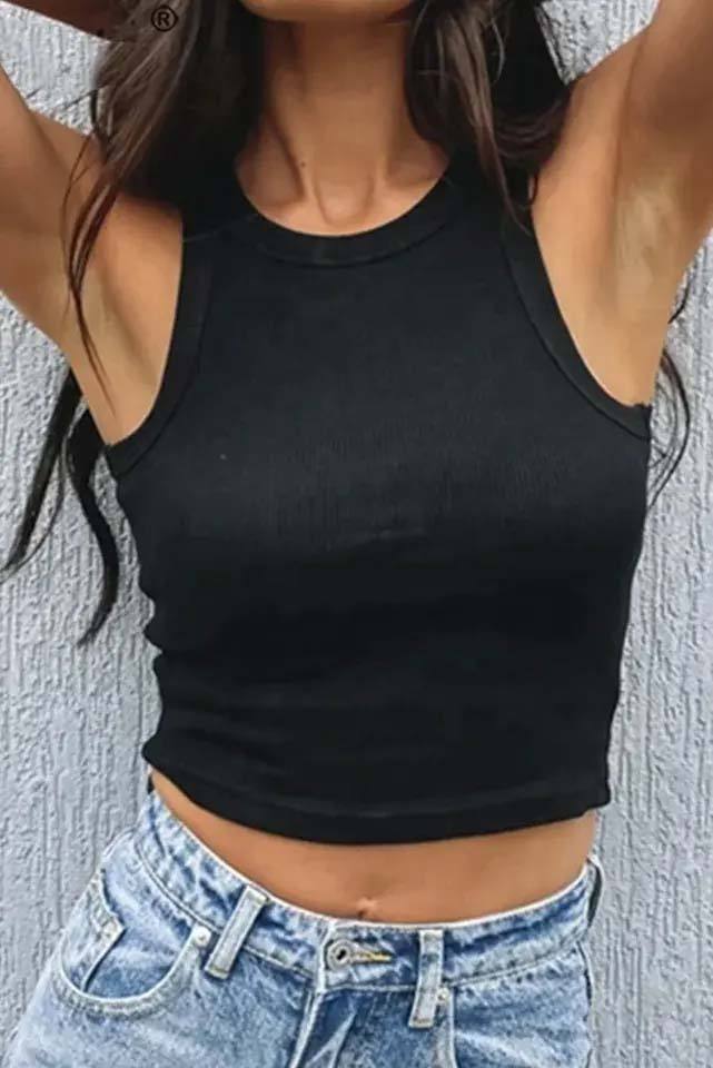 Camisetas sin Mangas Formales para Mujer, Personalizadas OEM, de Spandex/Algodón, Tejido Transpirable y Ecológico, Acanalado, Largo Regular, Antiencogimiento, Secado Rápido