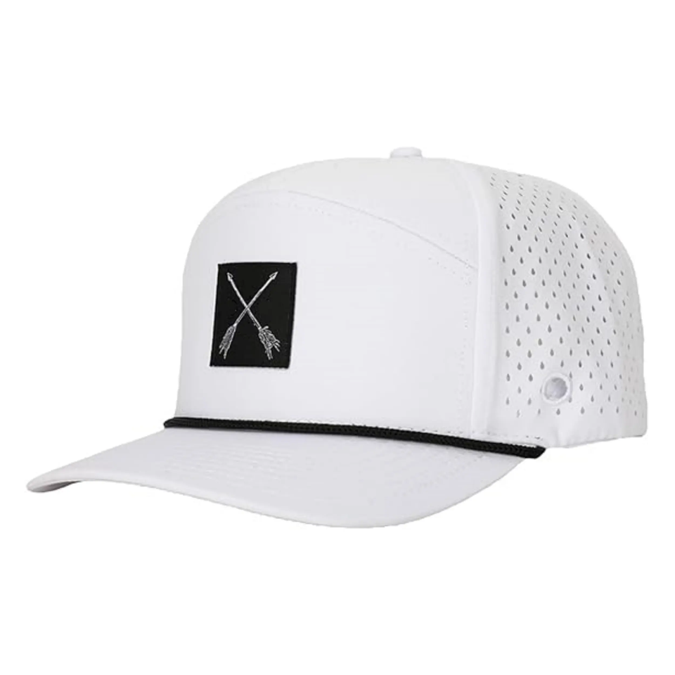 Gorras de béisbol de golf de 5 paneles personalizadas OEM Gorras deportivas impermeables y de rendimiento con agujero de cuerda cortado con láser hechas de tela de malla