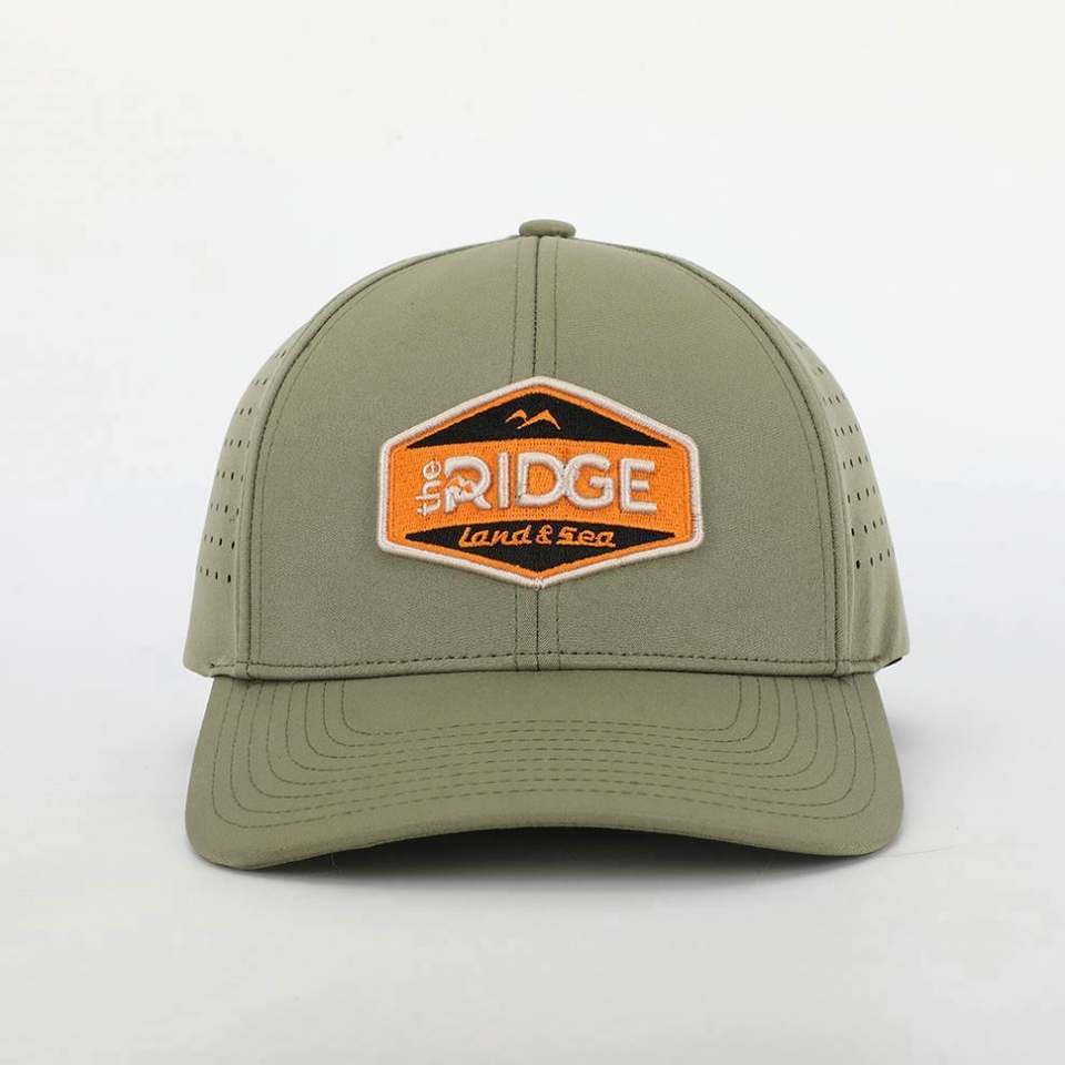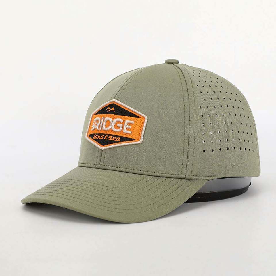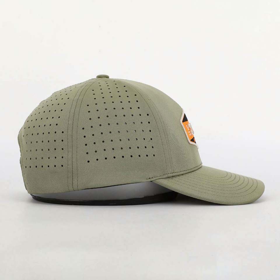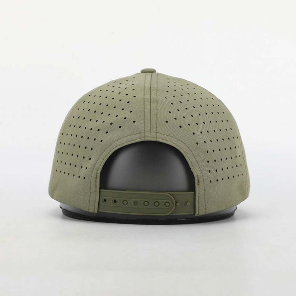 Gorra de Béisbol Deportiva Personalizada OEM de 6 Paneles, de Alta Calidad, con Orificios Cortados con Láser Verde, con Imagen Deportiva y Logotipo Bordado en 3D