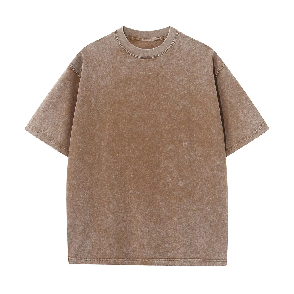 Camiseta Corta de Hombre con Cuello Redondo, 100% Algodón Pesado, Tejido con Acabado Ácido, Ajuste Holgado, Ecológica, Transpirable, Estilo Vintage Urbano, Personalizada OEM