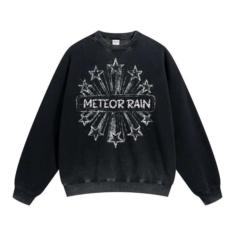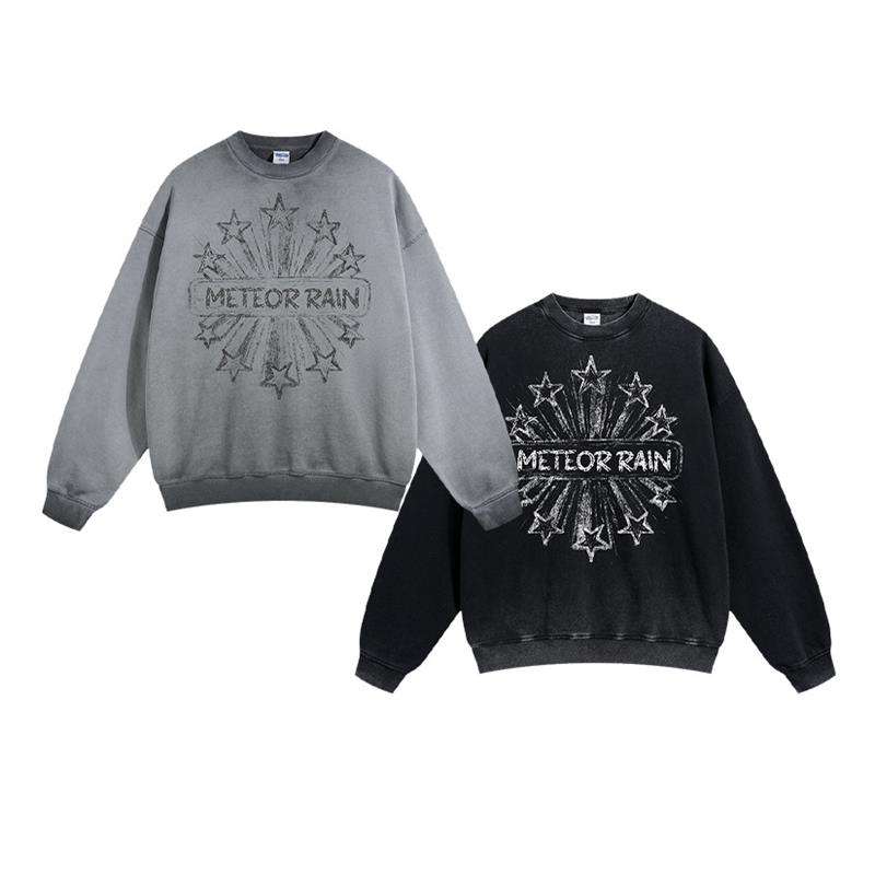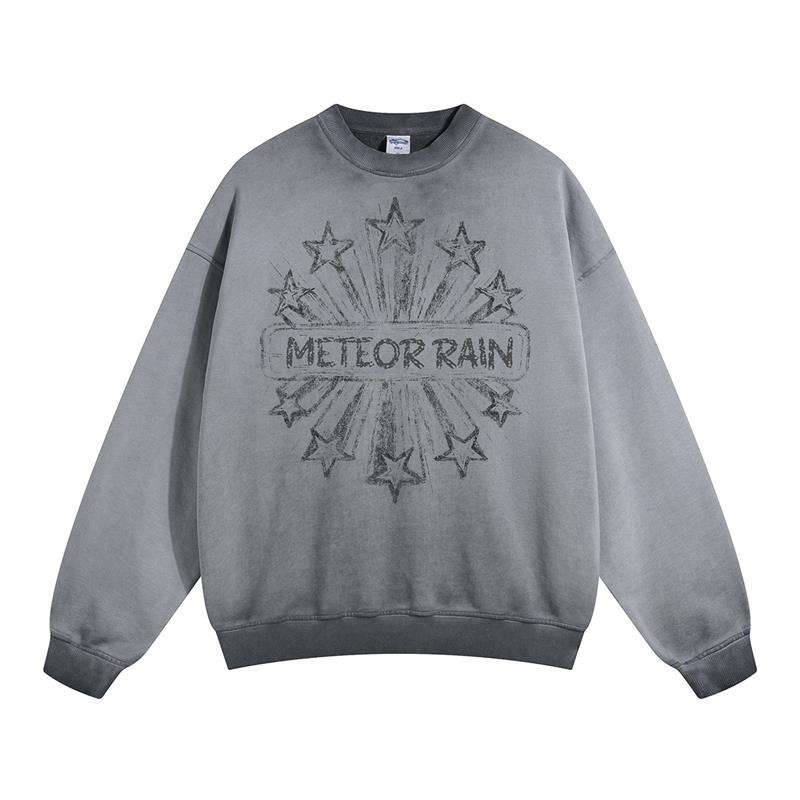 OEM personalizado ácido lavado Sudadera ligera transpirable 420 GSM algodón orgánico de gran tamaño Boxy hombres Sudadera de cuello redondo