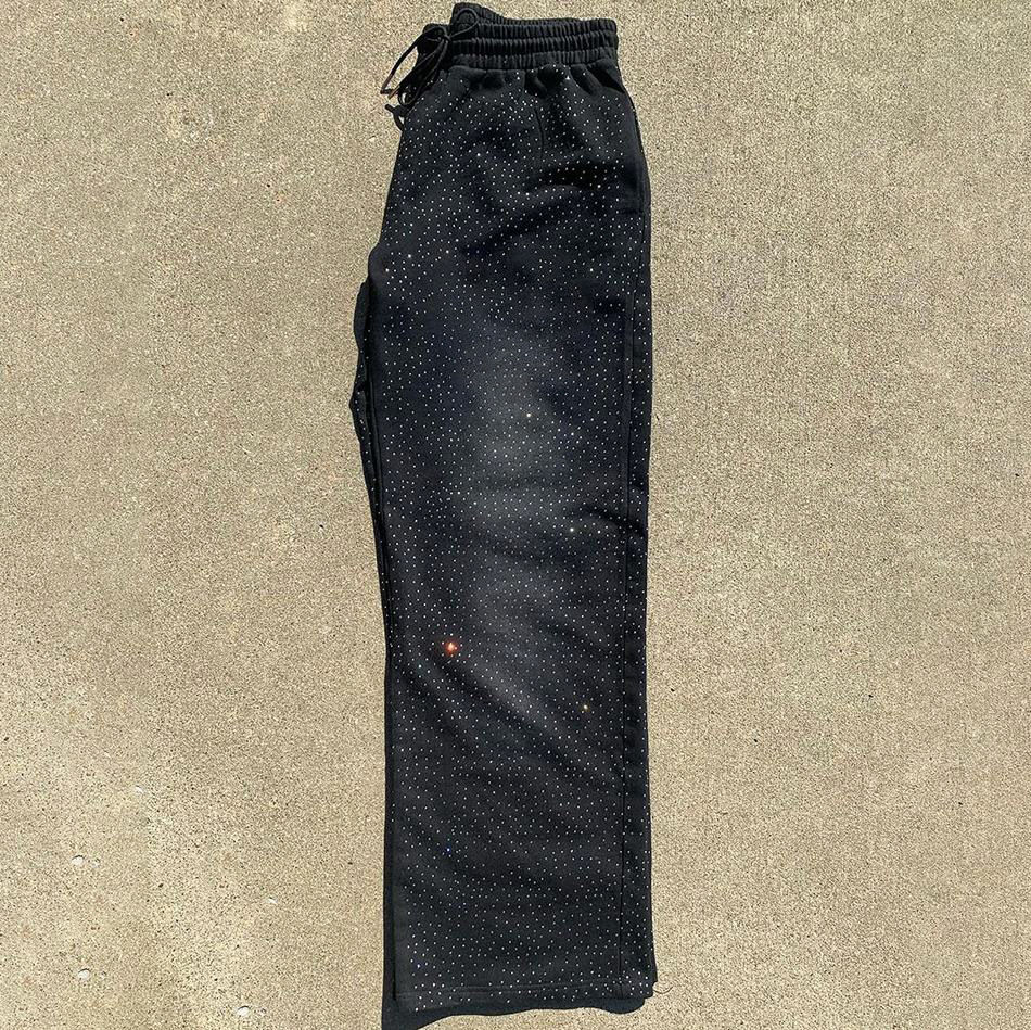OEM personalizado de algodón de peso pesado pantalones de chándal holgados Streetwear desgastado lavado ácido bordado apliques Logo patrón recto Casual