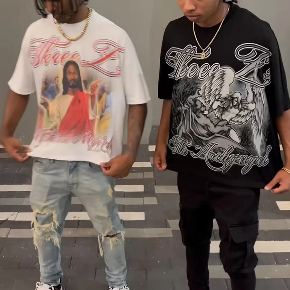Camiseta de hombre OEM personalizada, de corte holgado y extragrande, con efecto desgastado, lavado ácido, estilo vintage, informal, de manga corta, de punto.