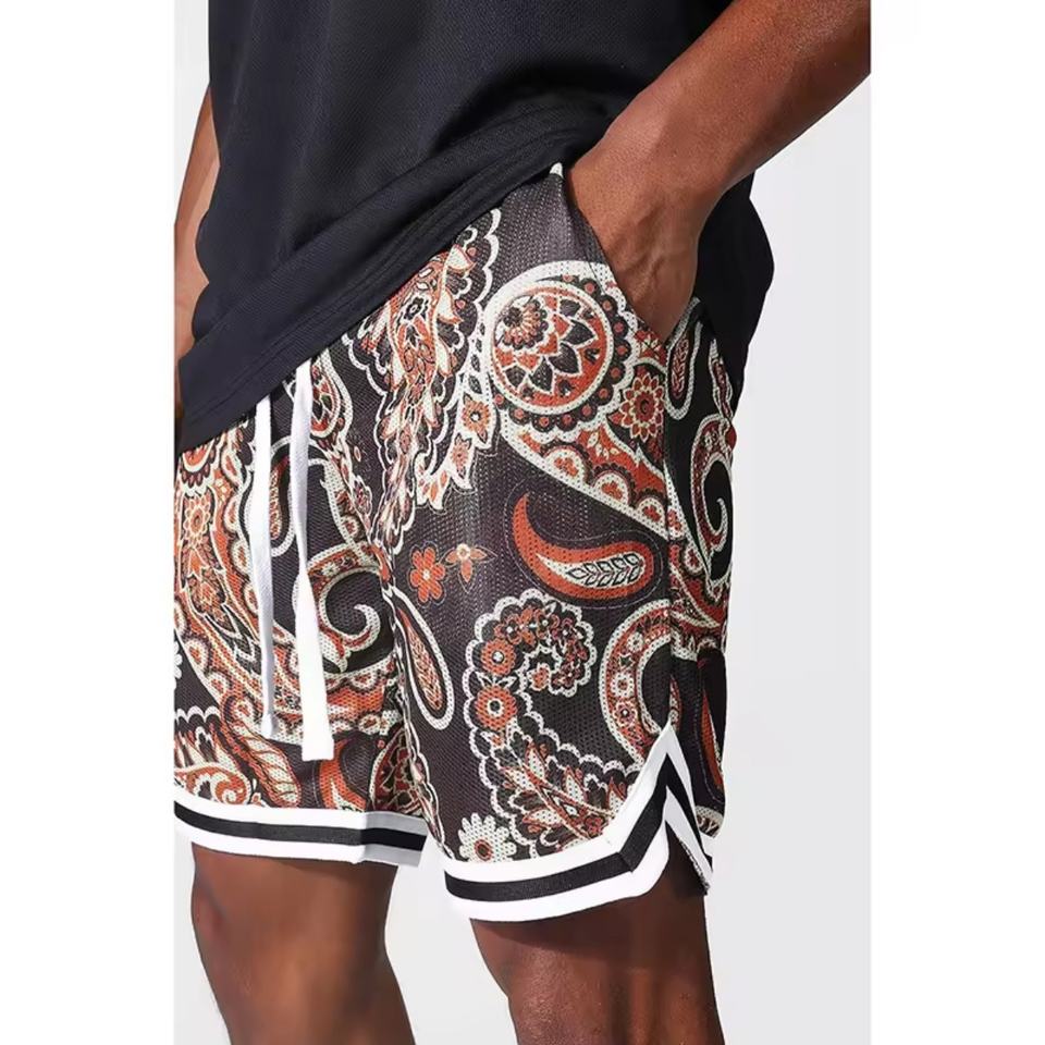 Pañuelo de malla transpirable personalizado OEM para hombre, talla grande, con estampado Paisley, para verano, gimnasio, baloncesto, sublimado, de secado rápido, antibacteriano, informal.