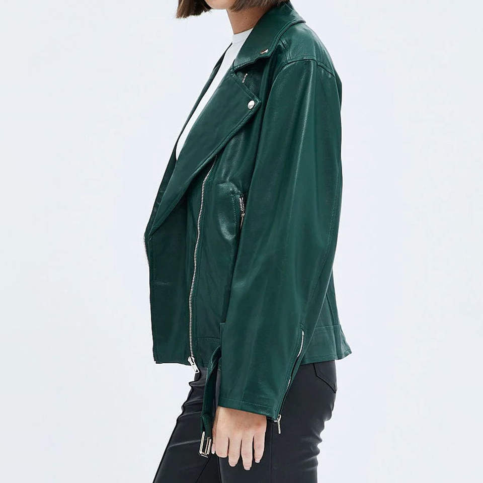 Chaqueta de Cuero PU de Alta Calidad con Diseño Personalizado OEM, Chaqueta de Motociclista Informal de Cuero Sintético con Cremallera para Mujer