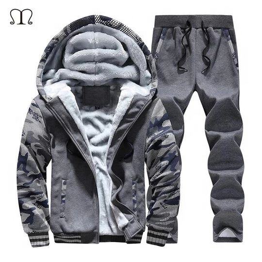 Chándales deportivos de diseño personalizado OEM, conjuntos de dos piezas con capucha y pantalones, chándales de invierno de forro polar de algodón para hombre