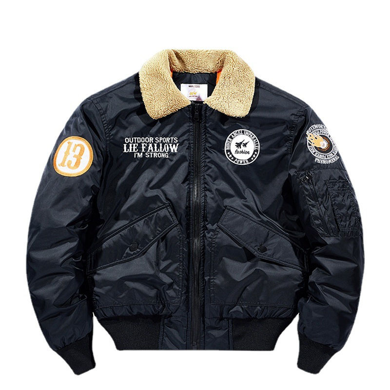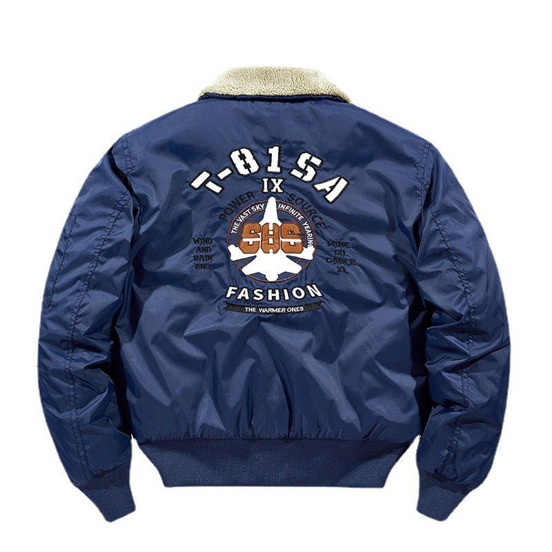 Chaqueta de Piloto de Invierno con Cierre de Cremallera y Cuello en V, Diseño Personalizado OEM, Estilo Urbano, Frente de Lona, para Hombre, con Botones y Patrón Sólido