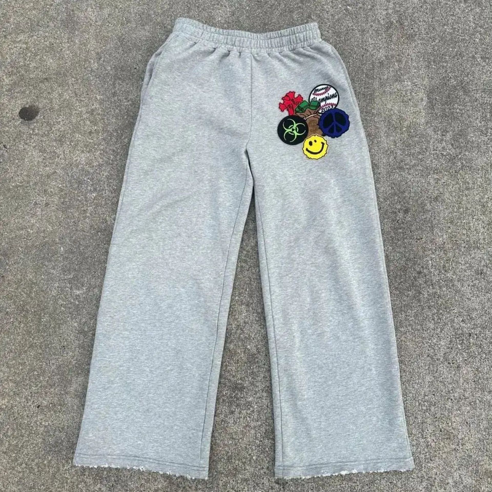 OEM personalizado desgastado parches bordados 100% algodón Zip Heavyweight Hoodie Streetwear pantalones de chándal con capucha conjunto chándal de verano