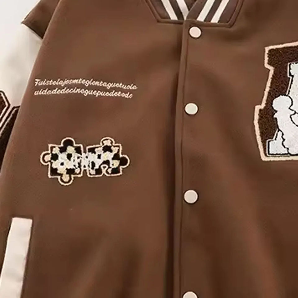 OEM personalizado logotipo bordado hombres Vintage otoño Varsity béisbol bombardero chaqueta acolchada cremalleras decoración carta ecológica