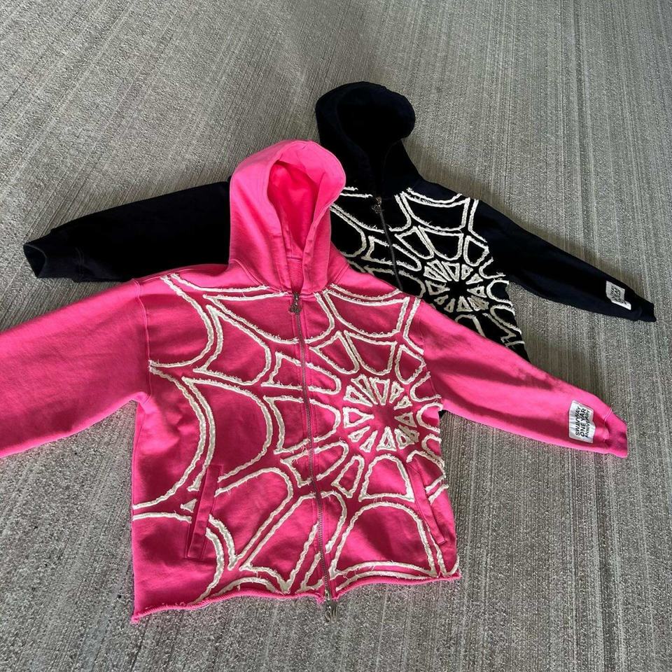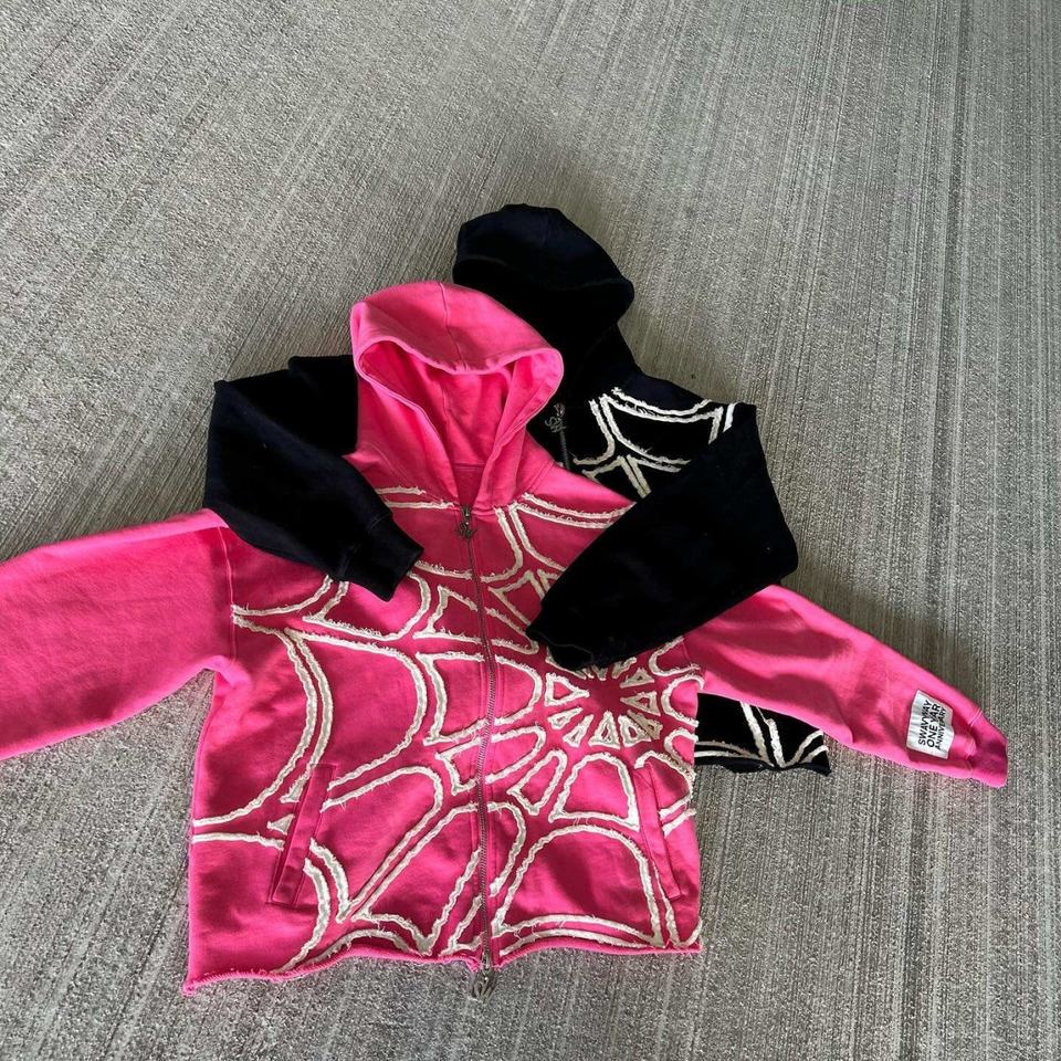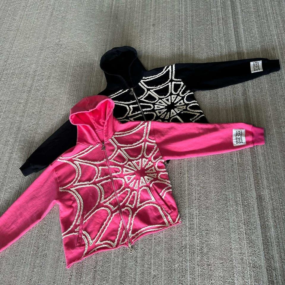 Sudadera con capucha para hombre, personalizada OEM, con parches bordados, con cremallera, efecto desgastado, bajo sin rematar y corte recortado, modelo Spidere