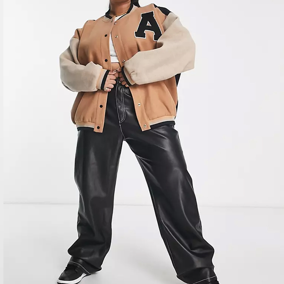 OEM personalizado bordado Diseño invierno lana Letterman chaqueta mujer alta calidad transpirable talla grande personalizado estampado algodón satén largo