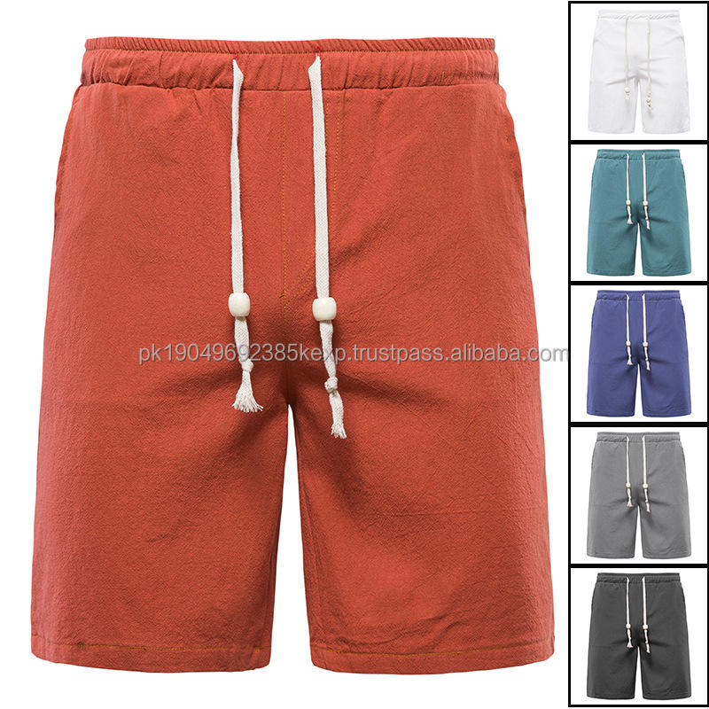 Pantalones de playa de verano para hombre, pantalones cortos informales de lino y lino con diseño de logotipo bordado personalizado OEM hechos de algodón y lino