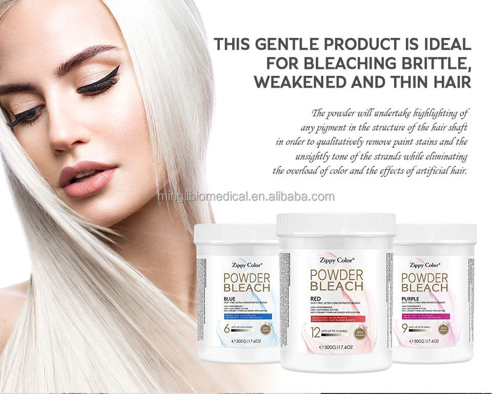 Decolorante en Polvo Suave Personalizado OEM para Cabello Quebradizo/Dañado - Tonos Azul/Rojo/Morado, 500g, Etiqueta Privada y Venta al Por Mayor Disponible