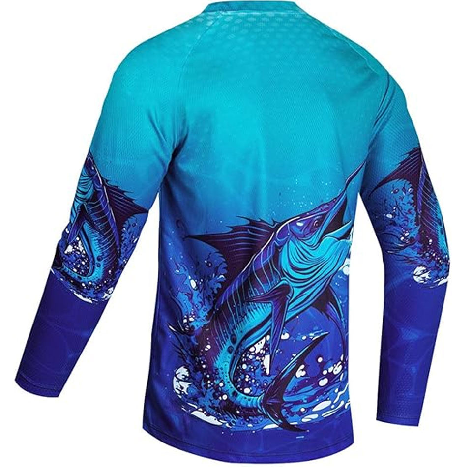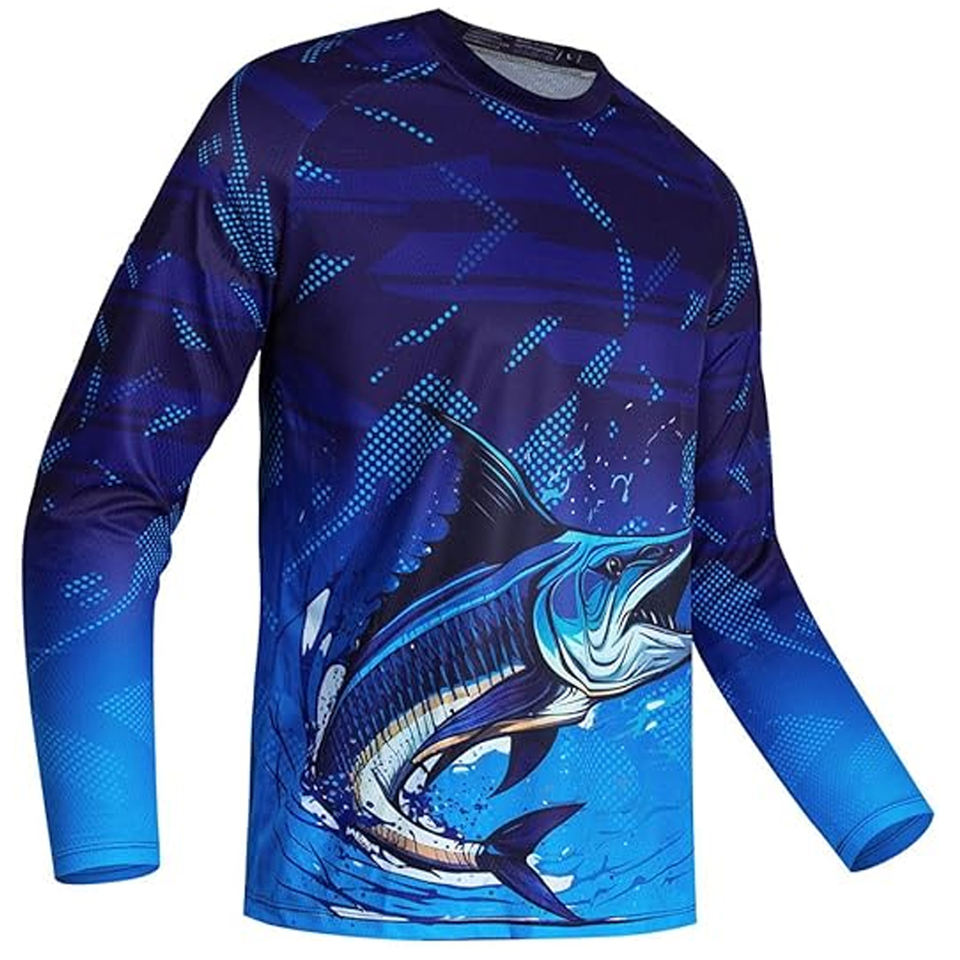 Camiseta de Pesca Personalizada OEM con Transferencia de Calor, 100% Poliéster, Transpirable, de Secado Rápido, con Protección UV y Logotipo