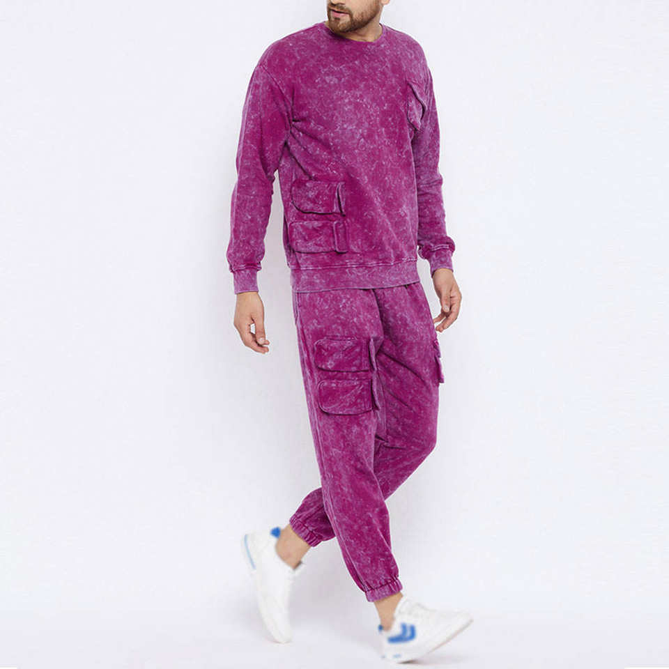 Sudadera con capucha y pantalones de chándal para hombre con lavado ácido de algodón pesado personalizado OEM con características apropiadas para el invierno