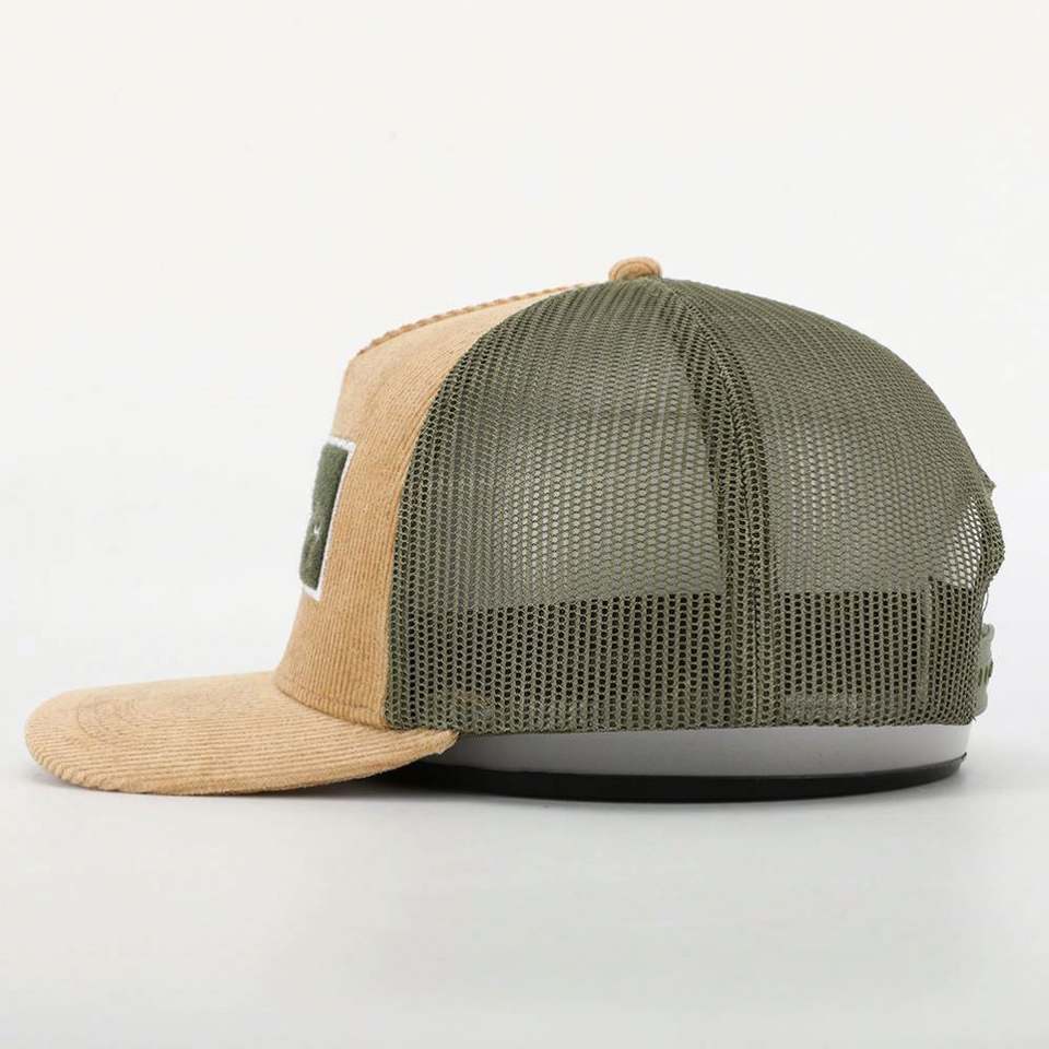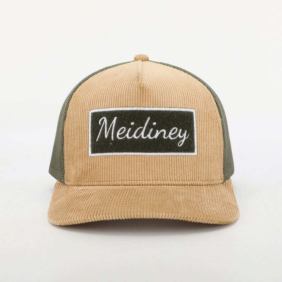 Gorra Trucker de Pana con Logotipo Bordado y Cierre de Gancho y Bucle, de 5 Paneles, para Hombre y Mujer, Personalizada OEM de Alta Calidad