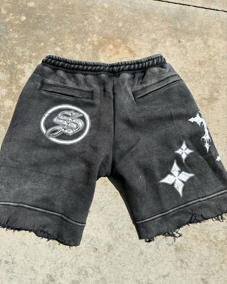 Pantalones cortos de gimnasio OEM personalizados de alta calidad lavado con ácido para hombres, ropa de calle de Color sólido para correr, serigrafía, logotipo de verano
