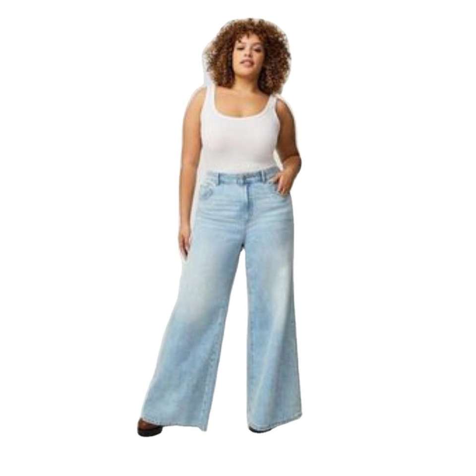 OEM personalizado de cintura alta en forma de A pantalones vaqueros largos de mezclilla para las mujeres de alta calidad transpirable lavado oscuro frontal estilo plano gran oferta Casual