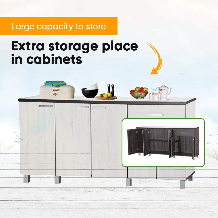 Soporte de armario de cocina personalizado OEM hecho en Malasia de madera contrachapada con 5 puertas 1 cajón disponible en color de tamaño personalizado para uso en sala de estar