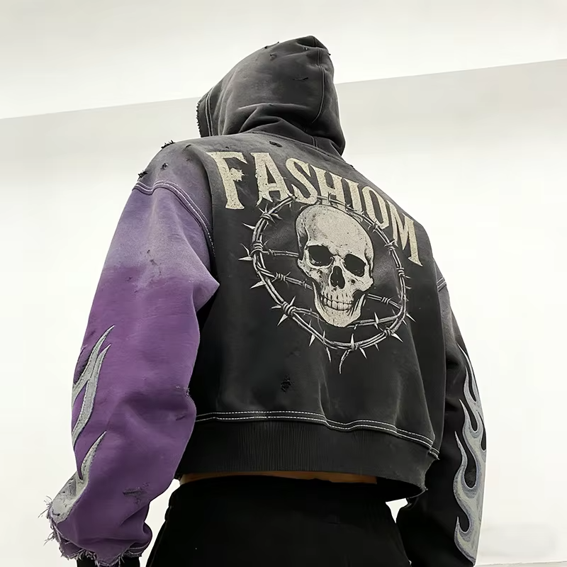 Sudadera Oversize de Estilo Urbano con Estampado Digital Azul Lavado al Ácido, Ecológica, de Alto Gramaje (330 GSM), con Efecto Desgastado y Logotipo Personalizado OEM