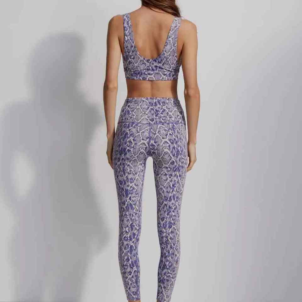 Conjunto de yoga con estampado de leopardo personalizado OEM, Sujetador deportivo de 2 piezas y mallas de cintura alta para mujer