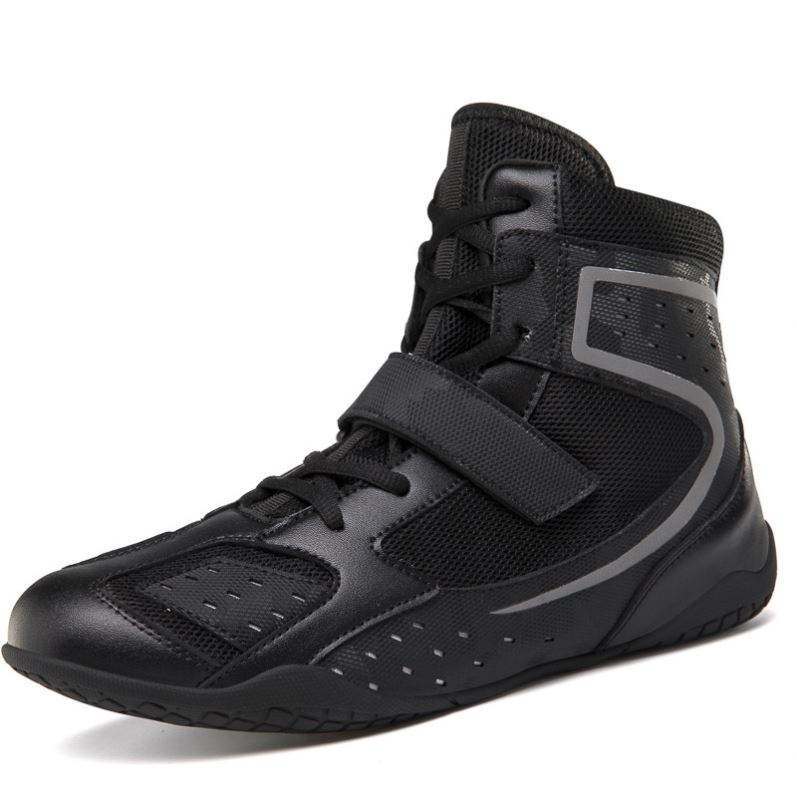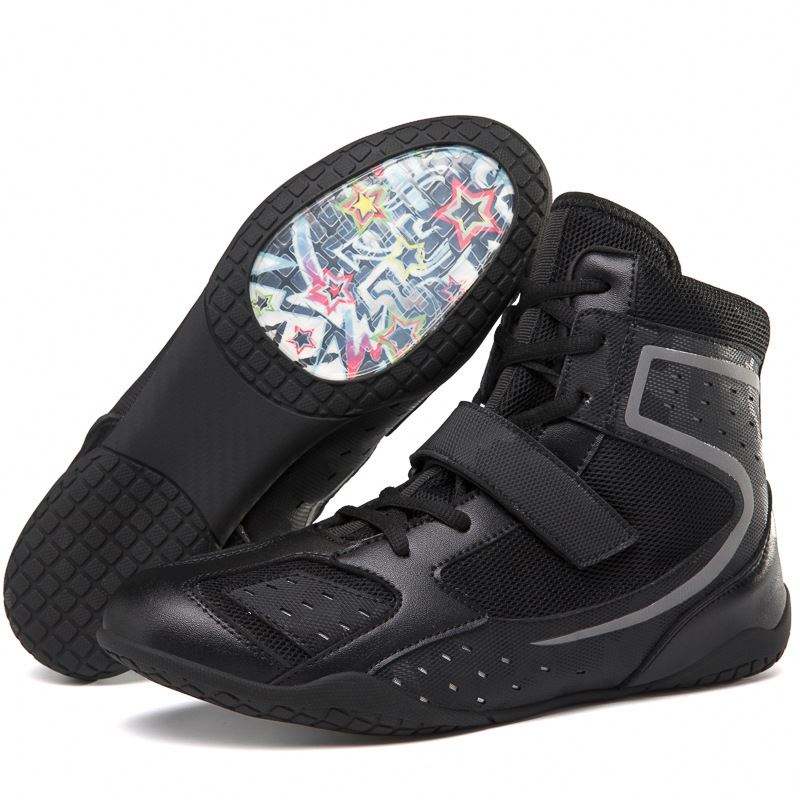 Zapatos de Boxeo y Lucha Libre con Logotipo Personalizado OEM de Fábrica, con Cordones, Puntera de Acero, Parte Superior de Cuero, Entresuela Compuesta Cómoda y Suela de Goma