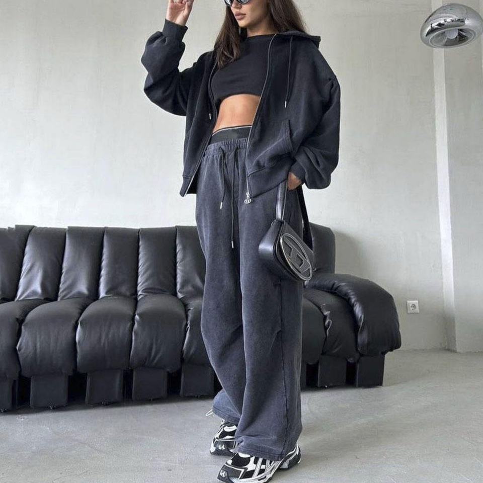 Conjunto de Sudadera con Capucha y Pantalones Deportivos de Alta Calidad con Logotipo Personalizado OEM, 100% Algodón French Terry, Estilo Vintage, Lavado Ácido, para Mujer