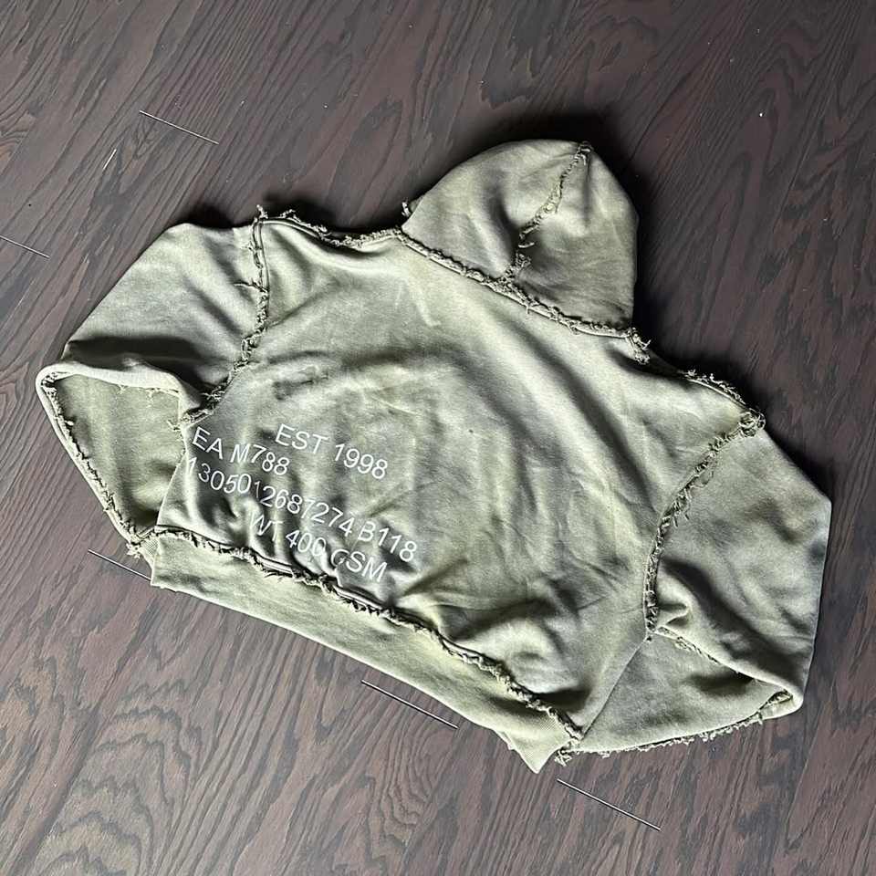 Sudadera con capucha y logotipo personalizado OEM para hombre, sudadera recortada Vintage con estampado DTG, jersey con dobladillo crudo, sudadera con parche sin cortar y coser sin cuerdas