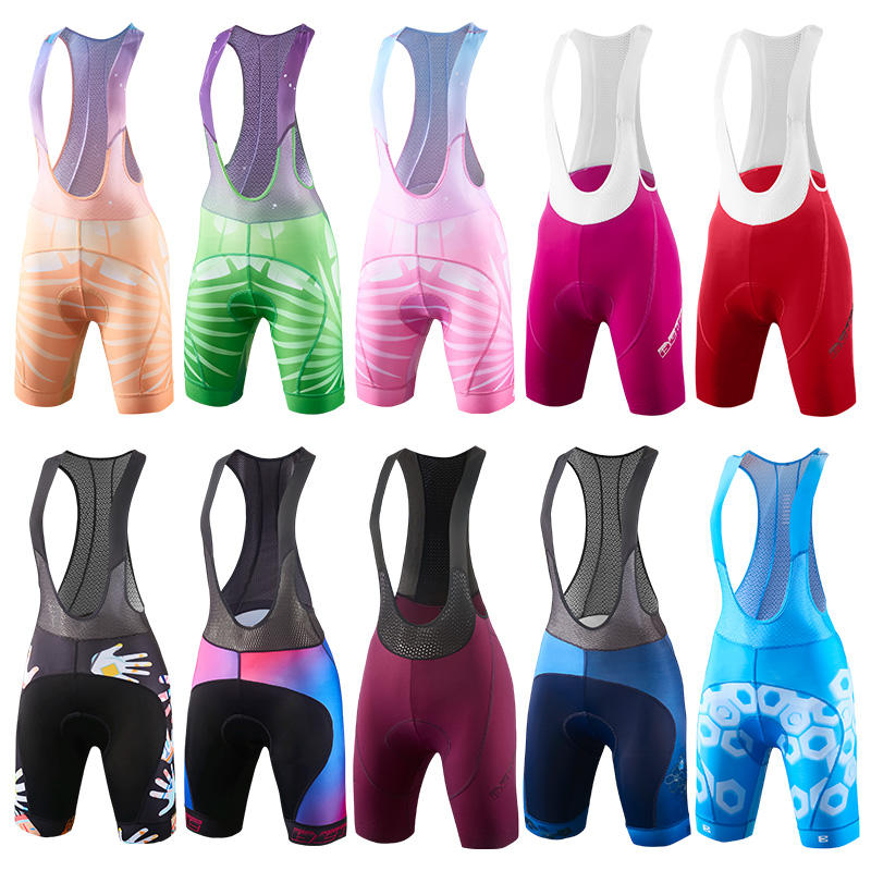 OEM logotipo personalizado italiano PRO equipo acolchado Mountain Road Bike Race Fit ciclismo Baberos pantalones cortos bolsillos para las mujeres